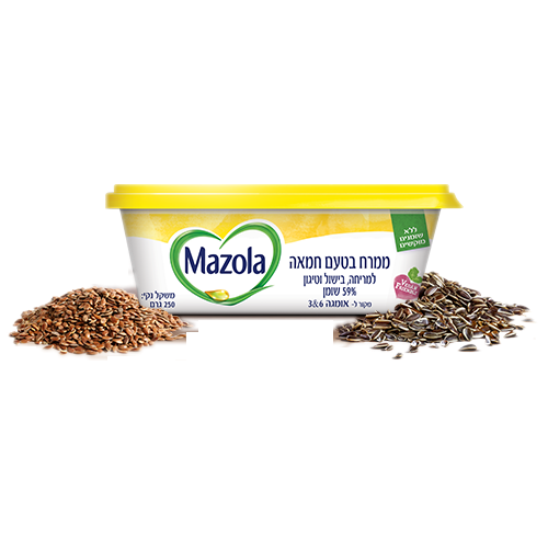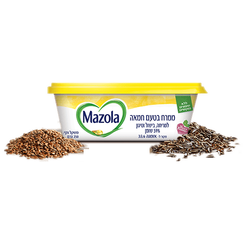 עשירה באופן טבעי באומגה 3 ו6, ללא כולסטרול, וטבעונית. התערובת הייחודית והאיכותית של שמנים מהצומח, מעניקה לכם את העושר והטוב שבטבע. החליפו חמאה 1:1. חשוב לדעת! ארבעה כריכים למריחה עם מזולה בטעם חמאה (20 גרם) תורמים תרומה חשובה לכמות היומית הנדרשת של אומגה 3 (2 גרם) ואומגה 6 (10 גרם).